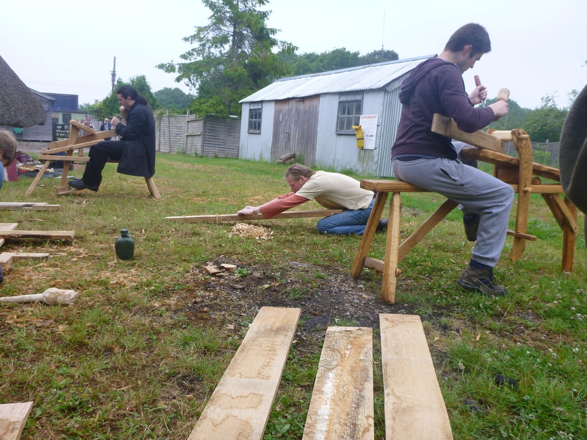 P1000463 Published June 24, 2013 at 4000 × 3000 in Ancient Doorways to Discovery Pt. 2… ← Previous Next → Rob using the spokeshave in a Yogic manner to clean up a plank.