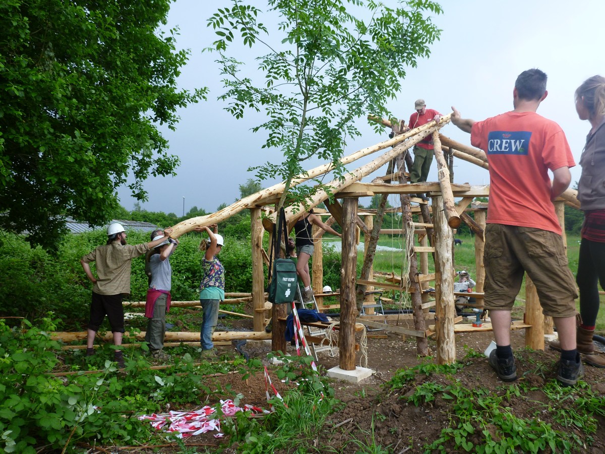 P1000391 Published July 1, 2013 at 4000 × 3000 in Reciprocal Roofs and Roundhouses… ← Previous Next → Halfway round, the roof starts to take shape!