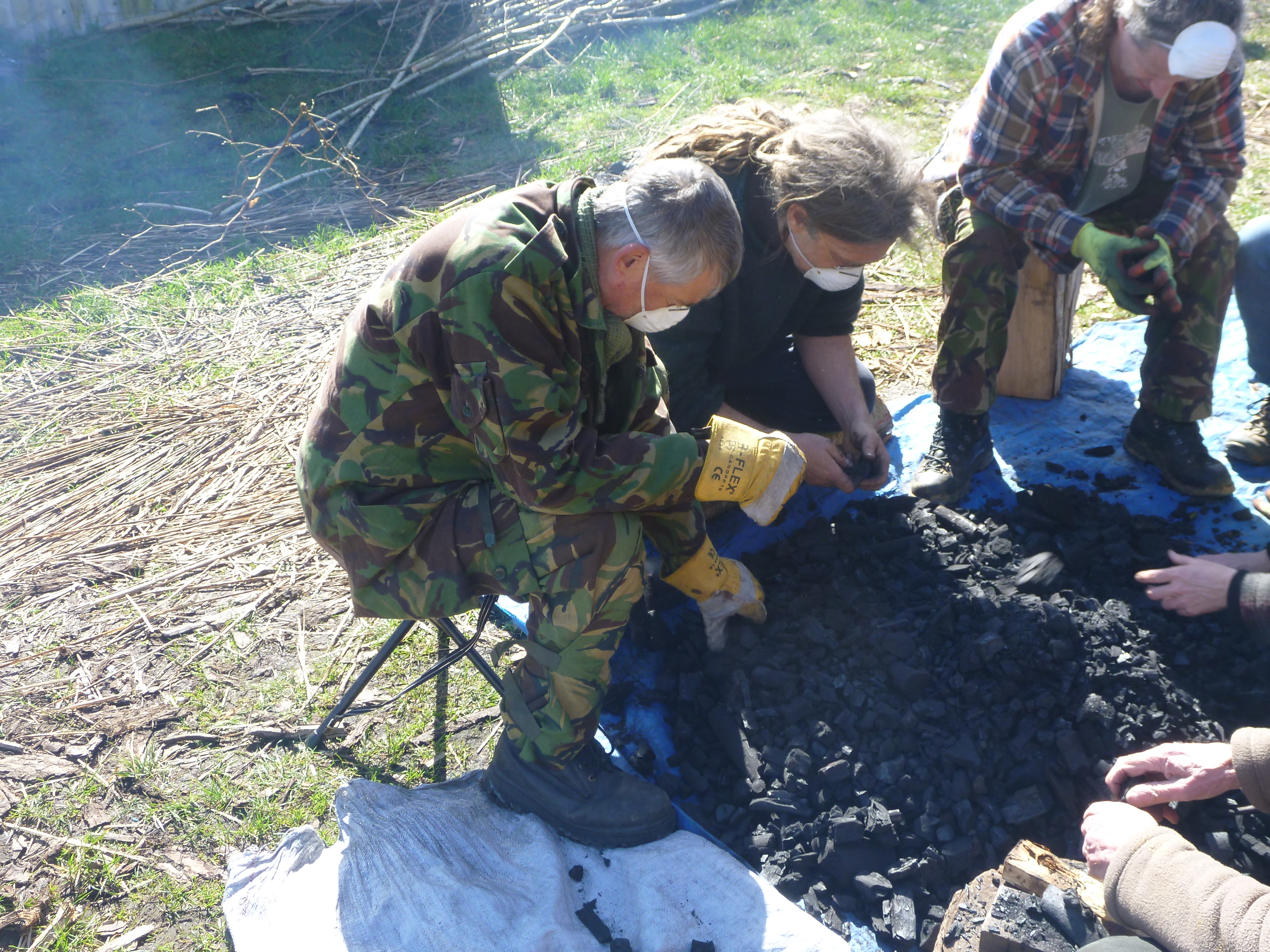 P1010333 Published March 27, 2014 at 4000 × 3000 in Ferrous Fascinations ← Previous Next → Sorting the charcoal- breaking it up into convenient sized lumps and sieving the dust out.