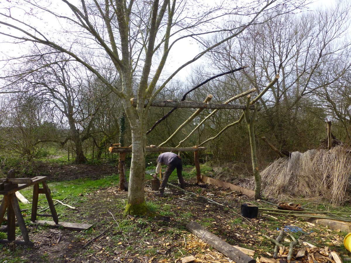 P1020204 Published April 11, 2014 at 4320 × 3240 in Sheds, Shacks and Shelters Pt.1 ← Previous Next → With the back wall plate in place, the rafters are chosen and laid on.