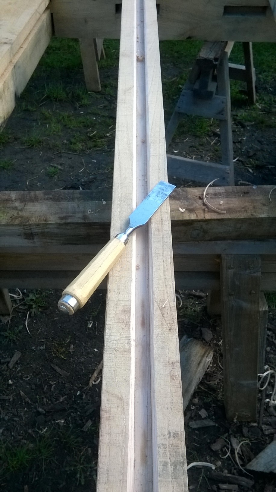WP_20151009_007 Published October 19, 2015 at 916 × 1632 in We’ve been framed! ← Previous Next → Cutting the groove for the planks to fit in…