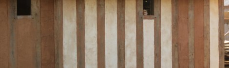 The carved barge boards over the porches are now up. The one with gripping beasts was painted with limewash with a natural caesin glue and yellow and red ochre pigments. […]