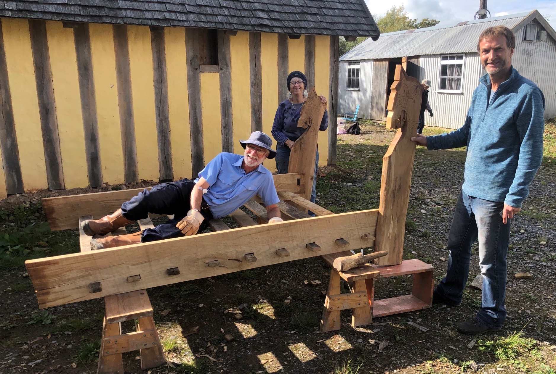 In bed with the Vikings October 13, 2021 · by richardbrunningswht · in Viking. · Work is going well on the bed, replicating one found in the Oseberg ship burial in Norway. Mike is trying out the frame, with Kath and Alastair holding their carved bed posts. Share this: Share on X (Opens in new window) X Share on Facebook (Opens in new window) Facebook Like Loading... Related