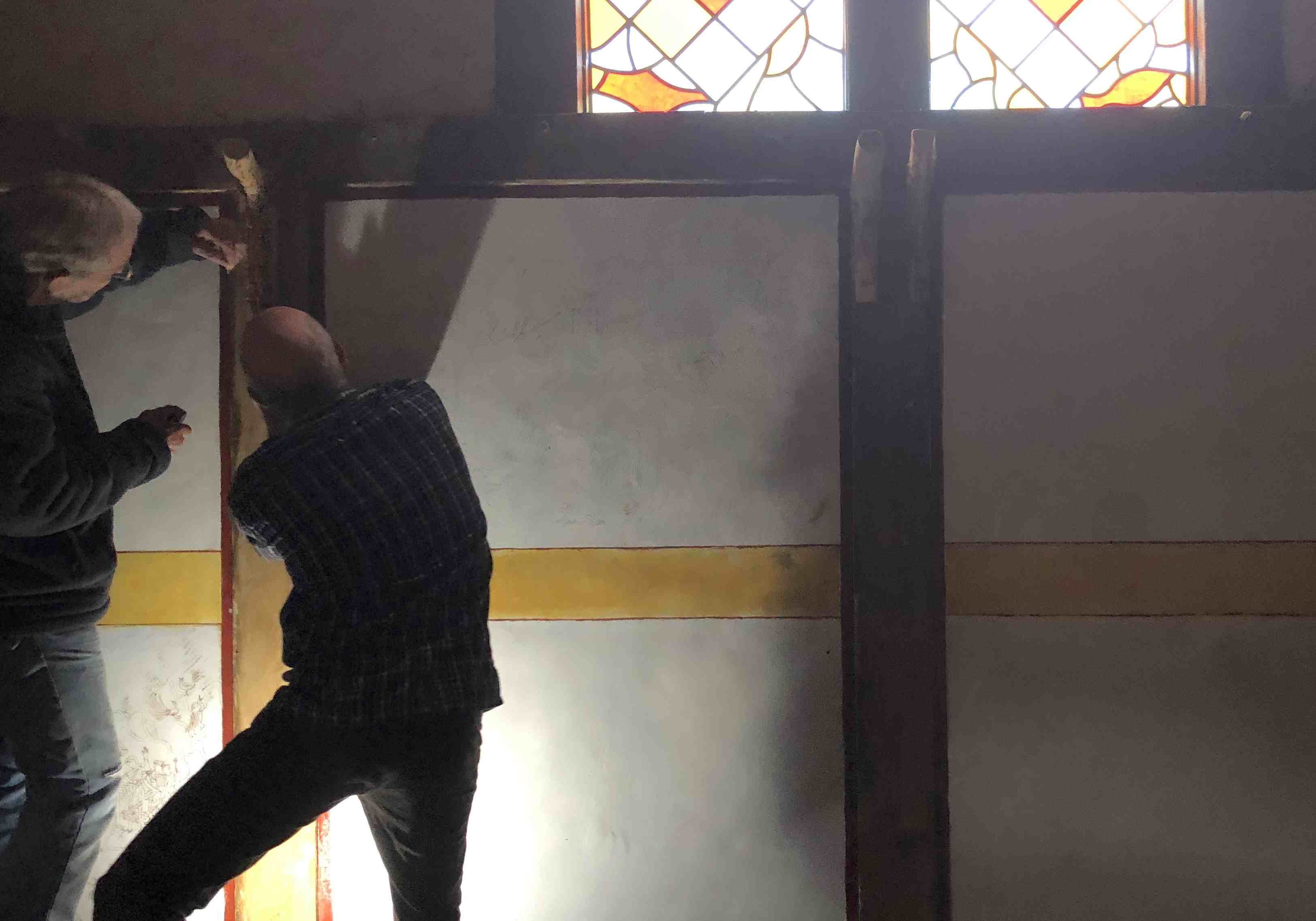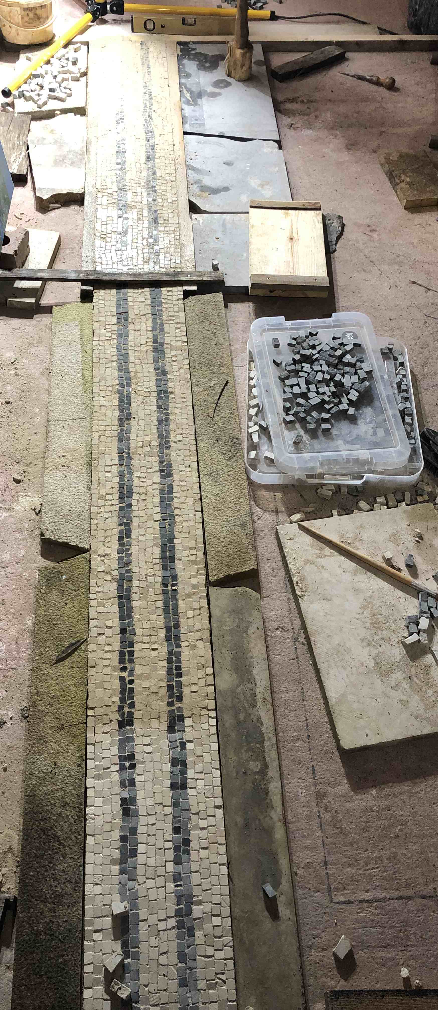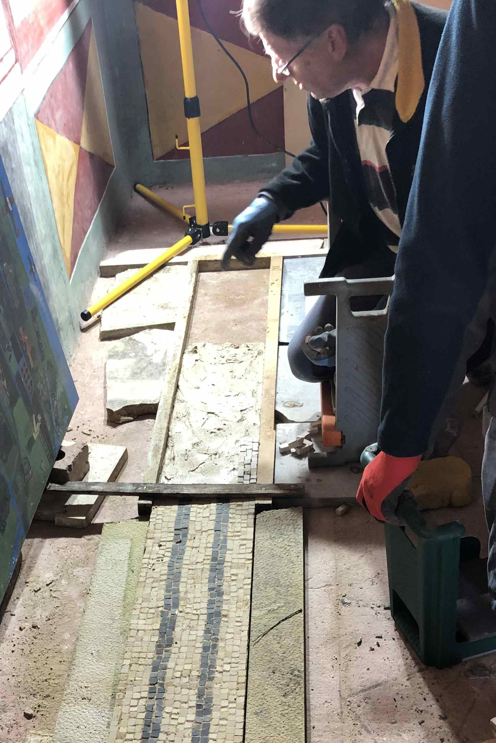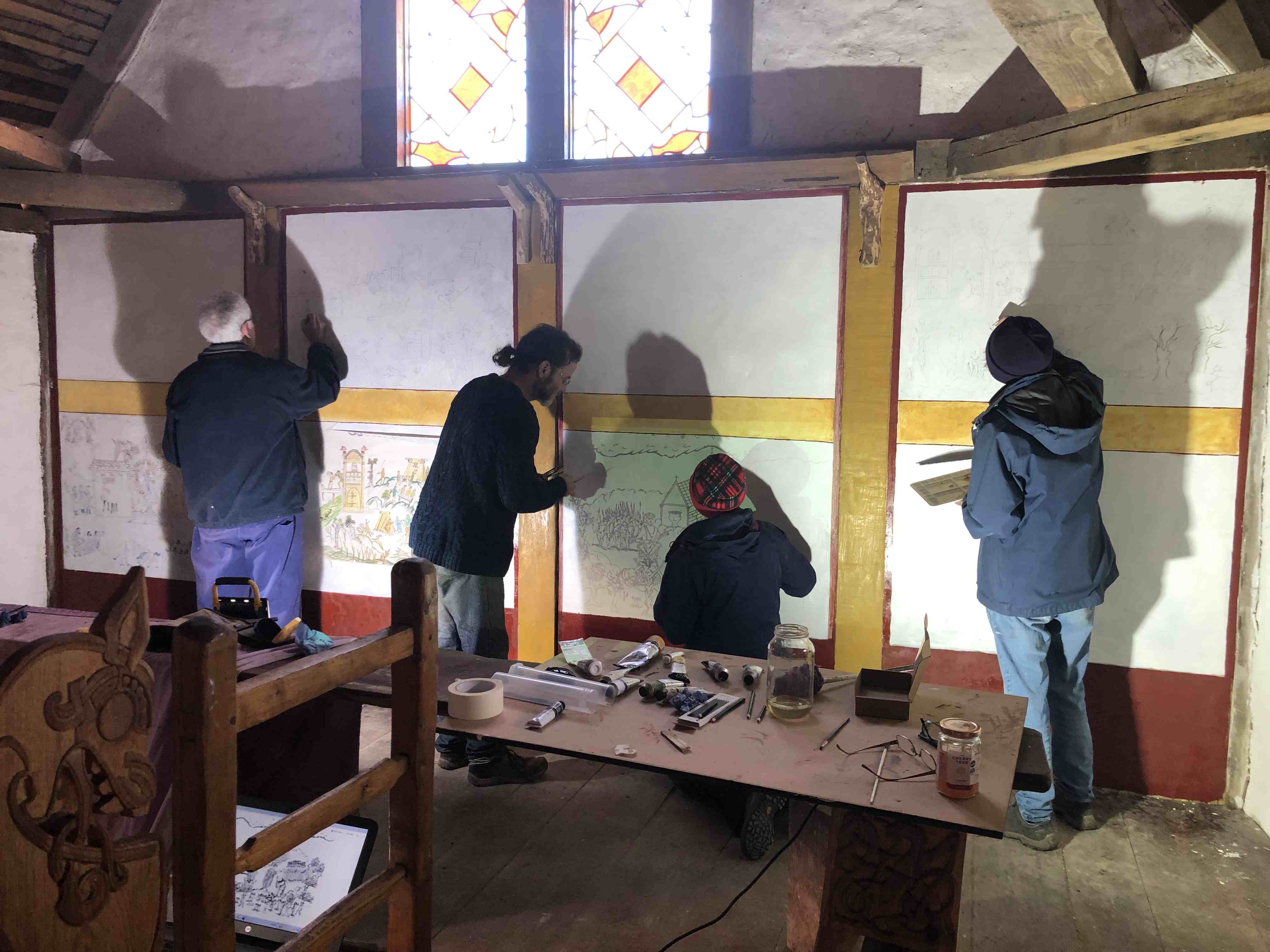 Another impressive day of work by the Hands on Heritage volunteers, with woodworking, mural painting and mosaic laying. All powered purely by cake (thank you Martin) and good fellowship.