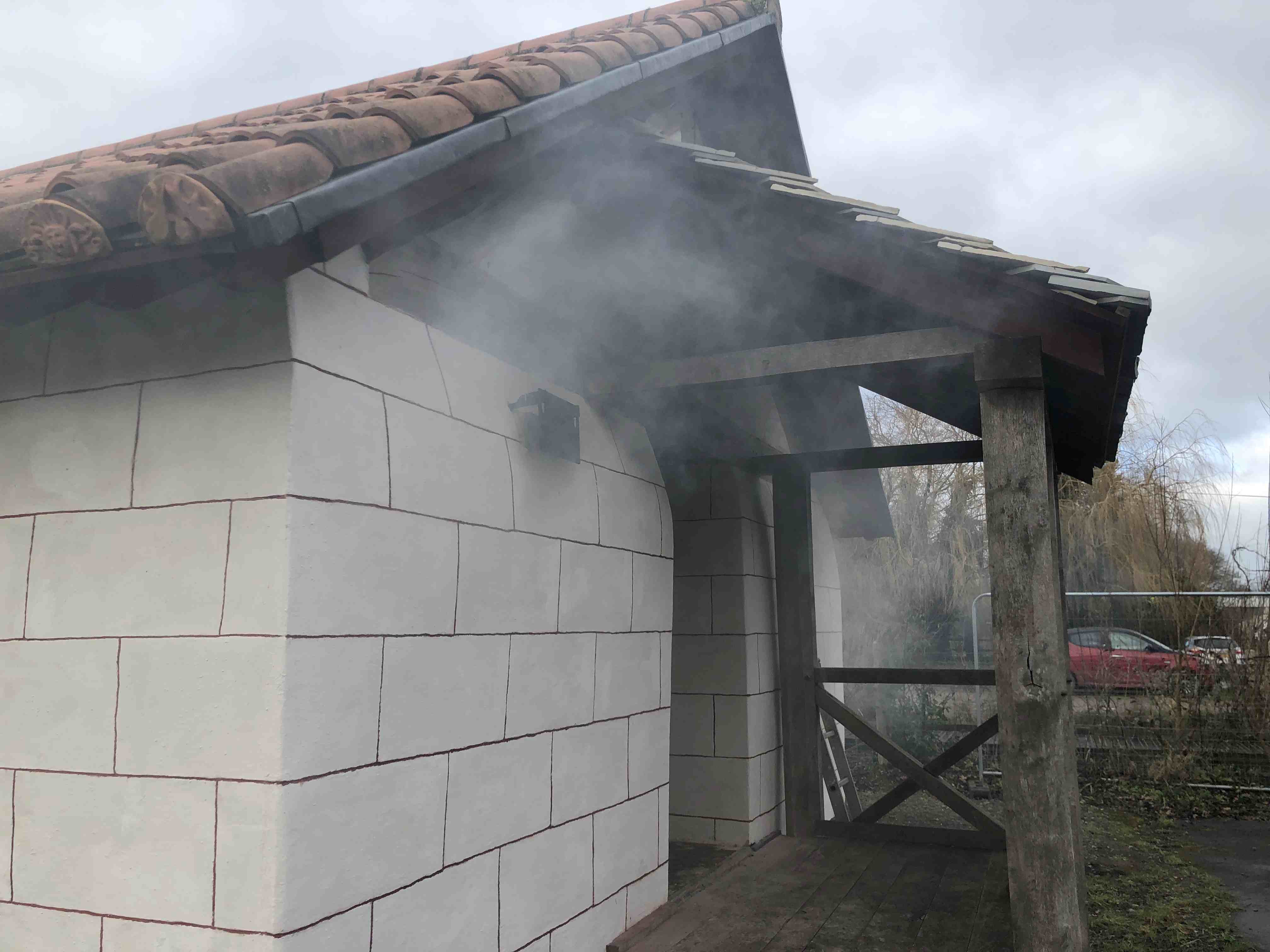 A big site clearup has begun as part of the preparation for opening in the summer. To dispose of some of our vast stocks of waste wood the hypocaust in the Roman building was lit and proved quite effective at warming the floor. By the end of the day the floor surface furthest from the furnace has reached 25 degrees C, while at the furnace end it surpassed 50. This was much appreciated by the mosaicists lounging (surely ‘working hard‘ Ed.) inside.