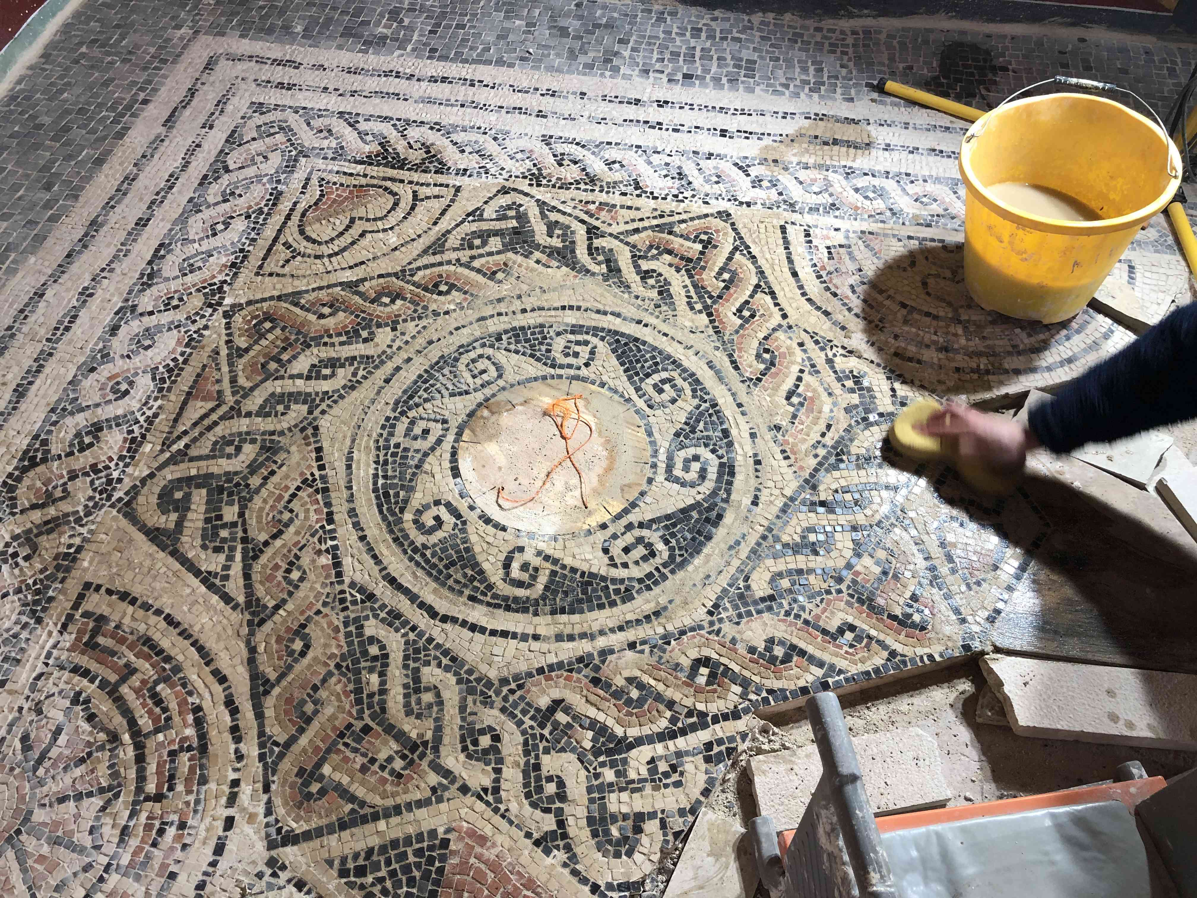 Another busy week, continuing work on the roundhouse roof, the legs of the Roman table and a circle of waves on the Roman mosaic.